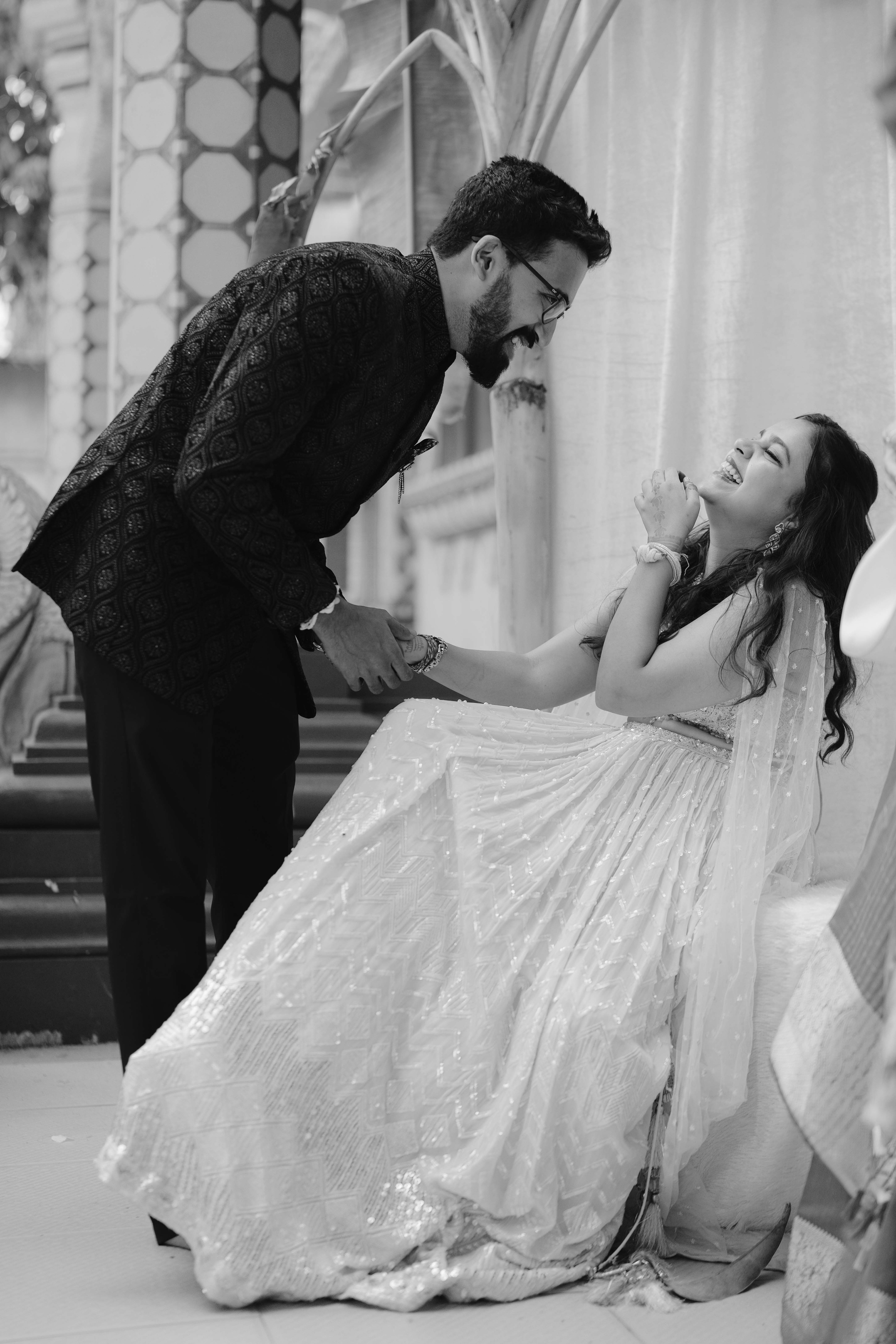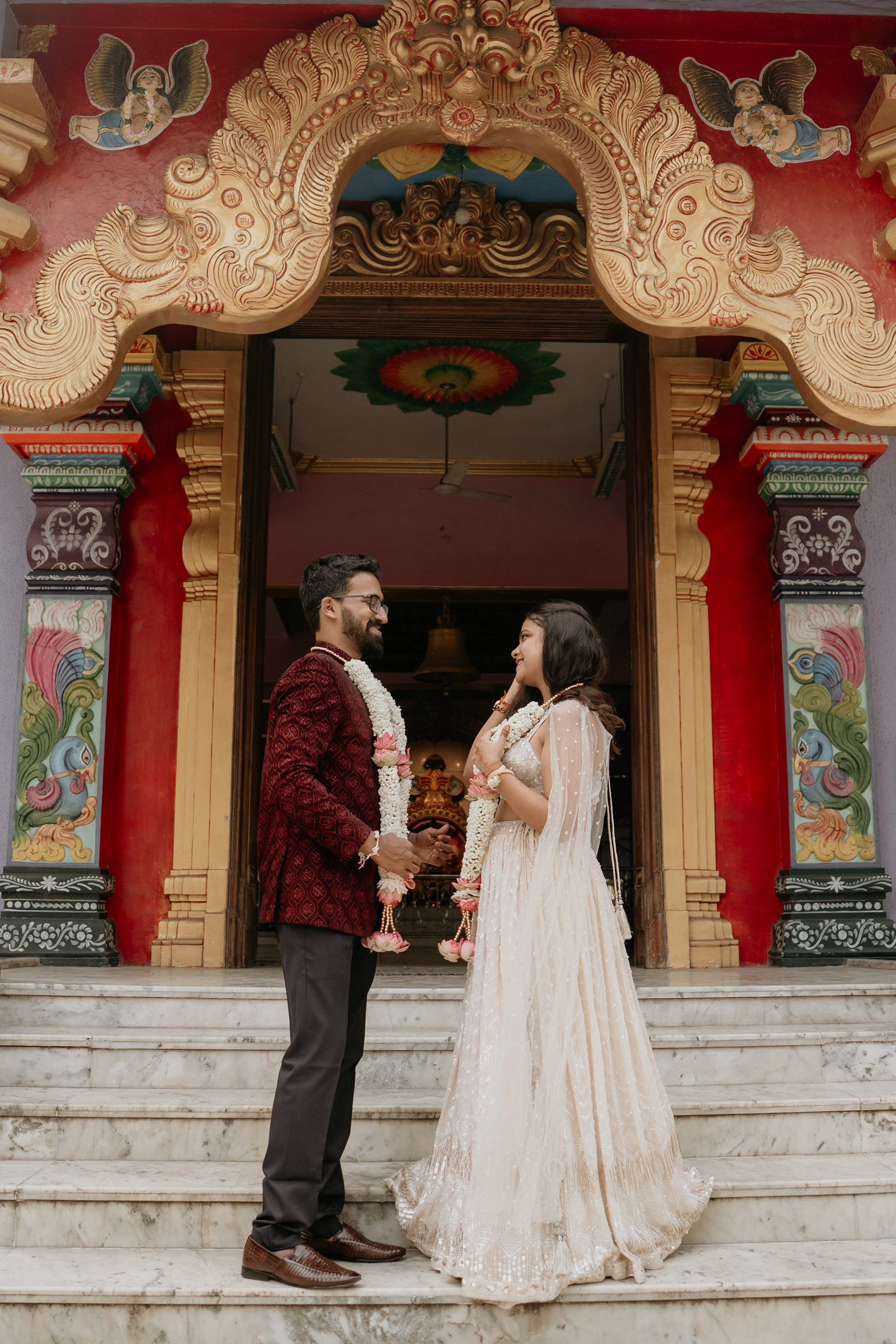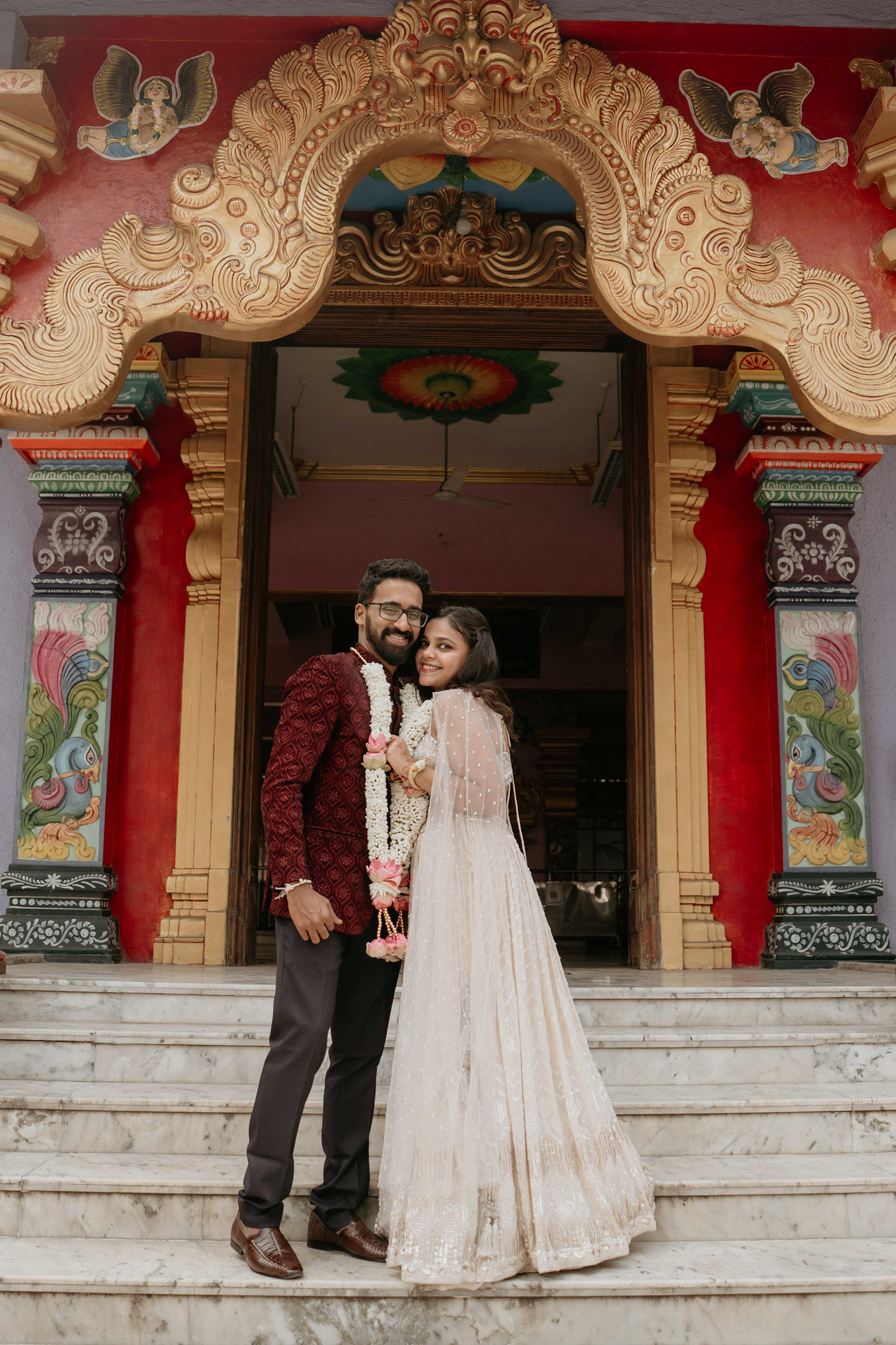 Every step they took on these marble stairs was a step toward a future built on the strong foundations of culture and faith. We invite you to explore this special gallery, where every frame captures the divine blessing of Govardhani Mata and the radiant joy of a couple starting their "forever" in the most sacred of ways.