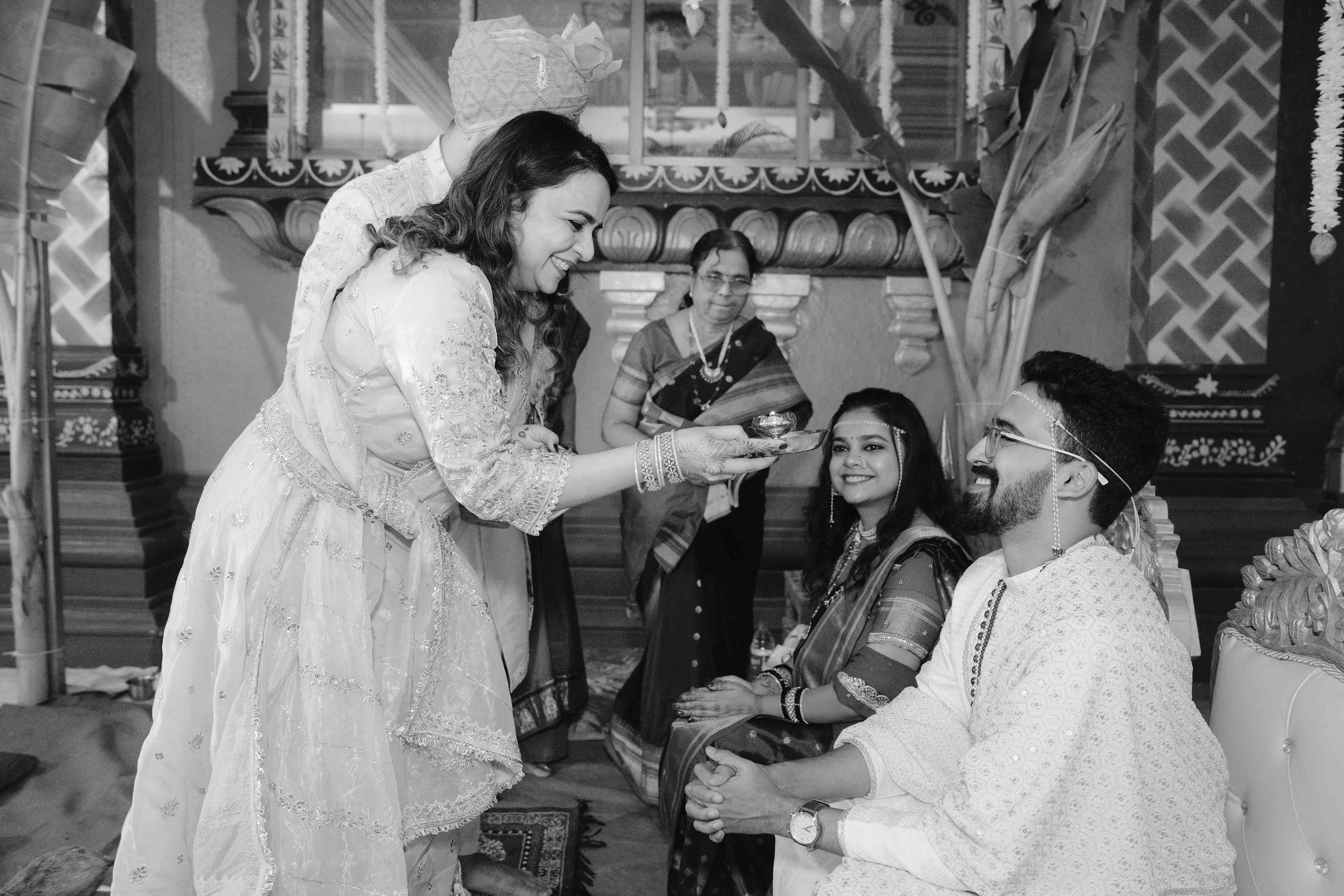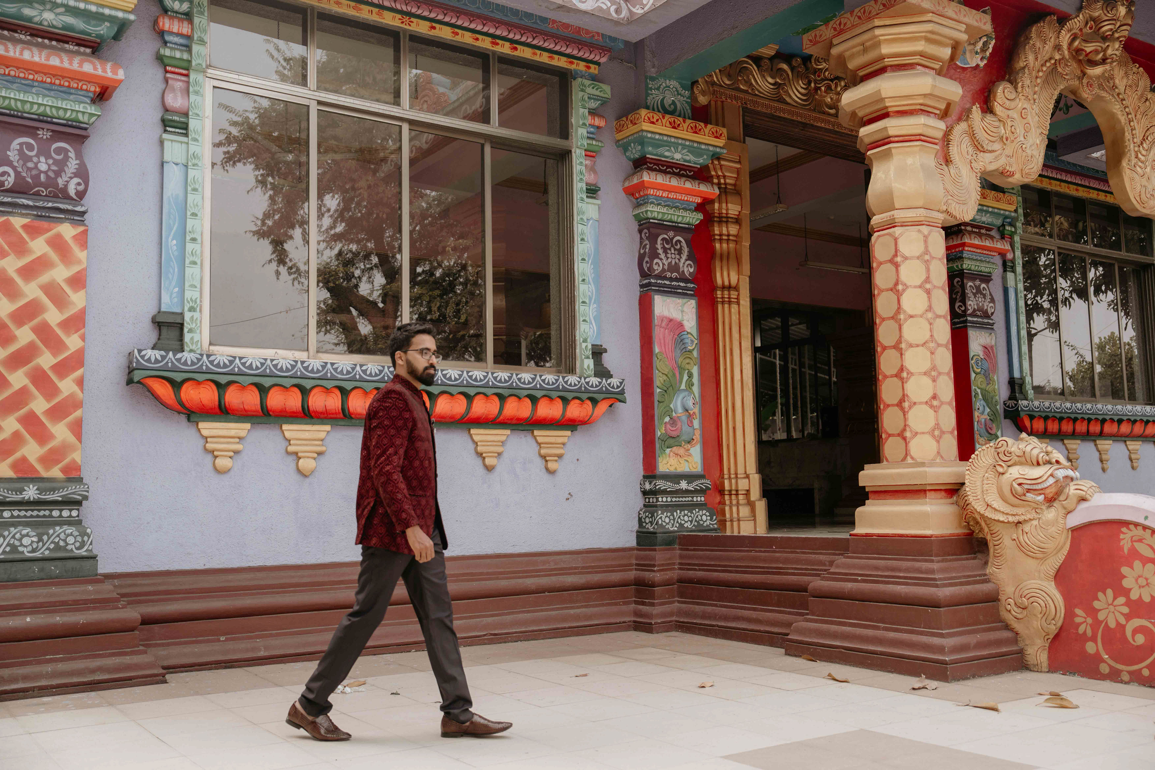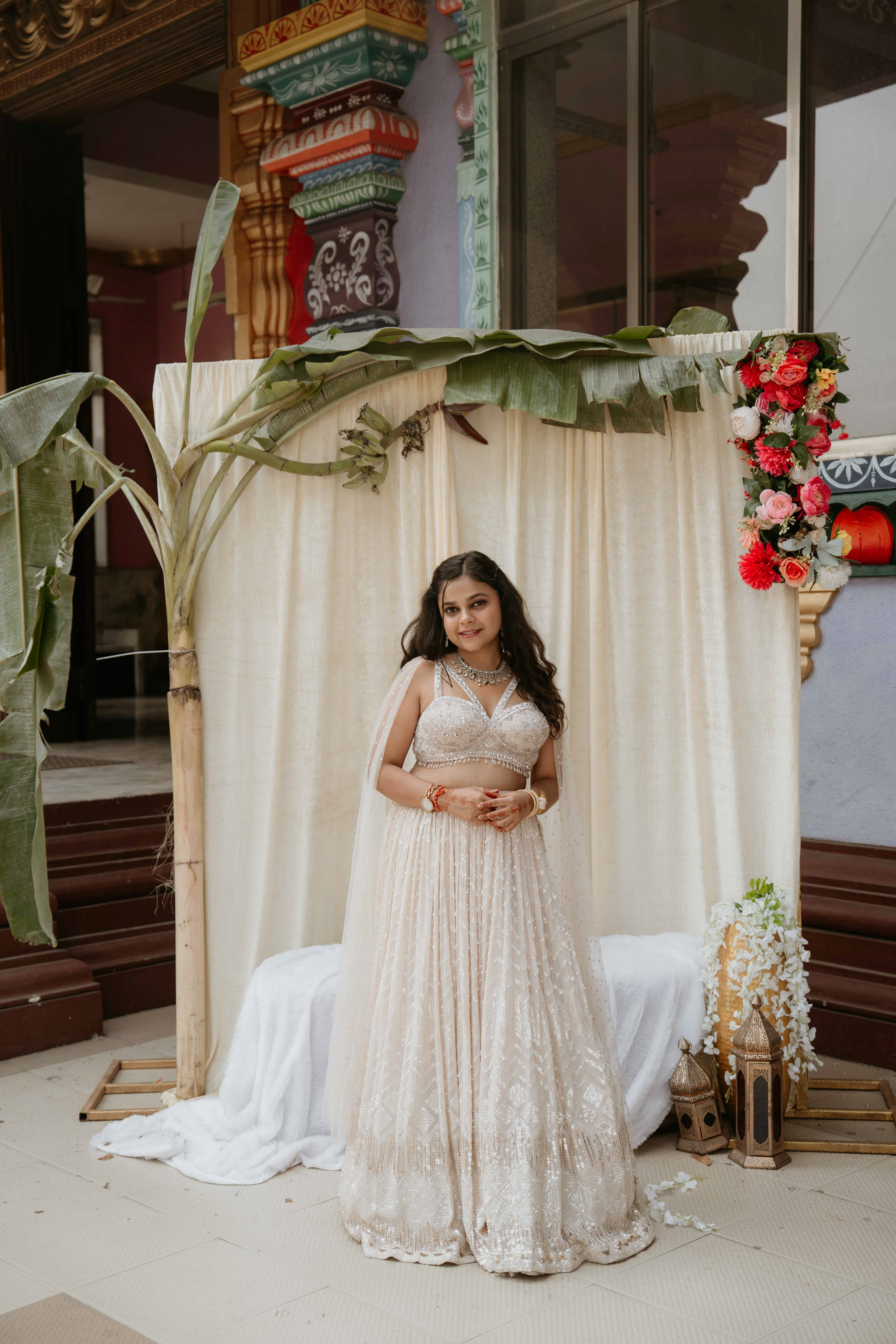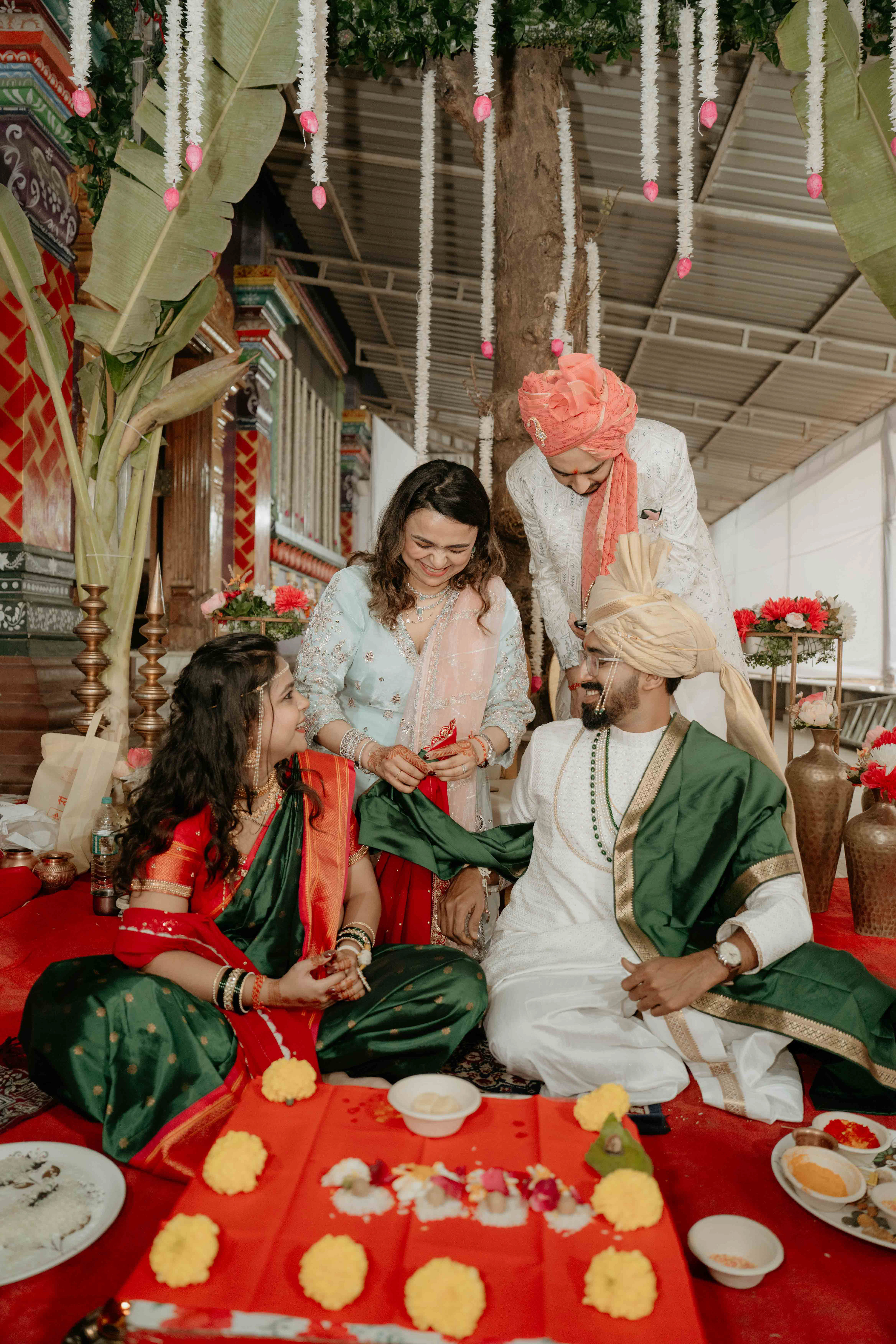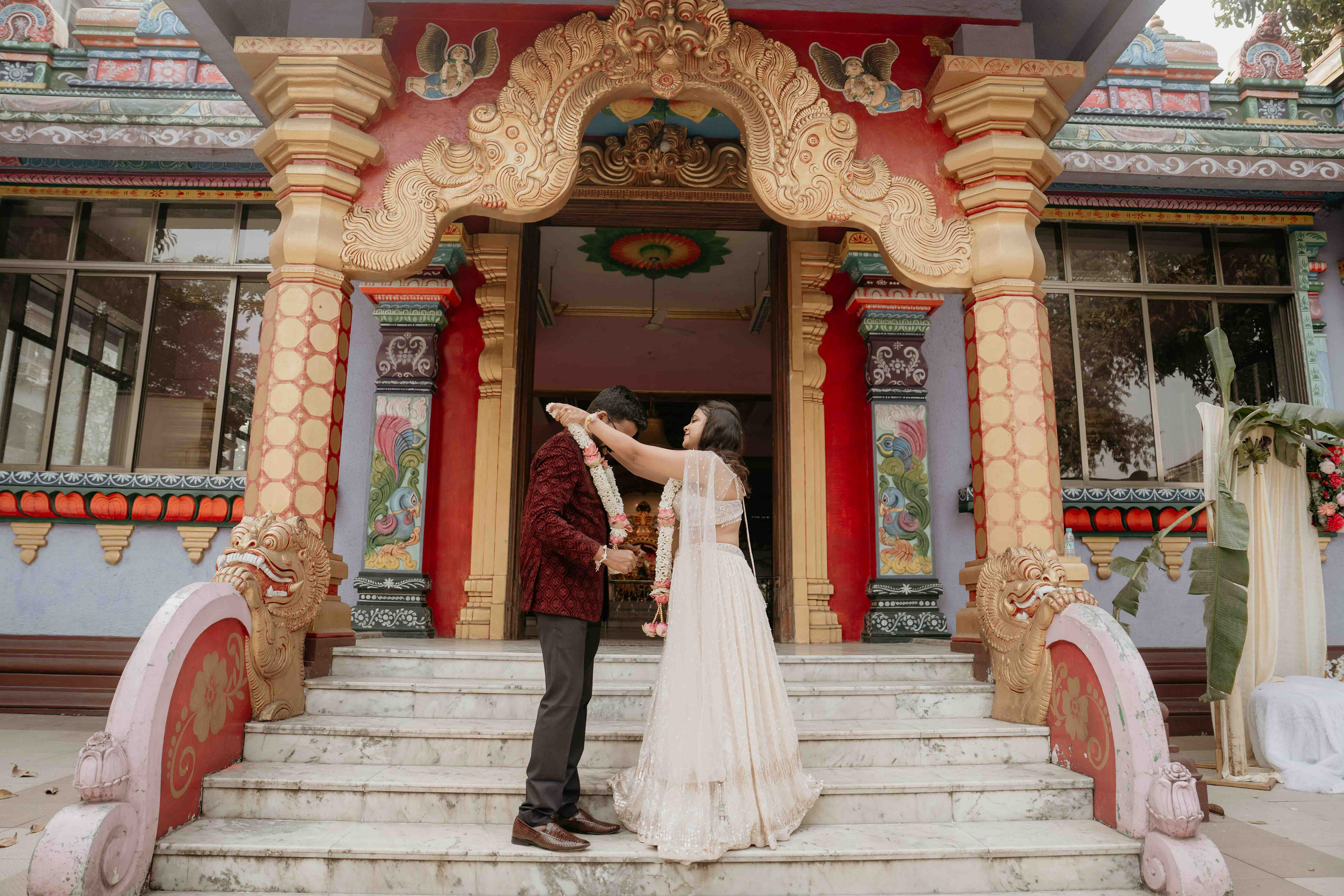 There is a unique magic that happens when heritage meets a sacred sanctuary. For Deepali and Abhinav, their wedding journey led them to the vibrant and soul-stirring Govardhani Mata Mandir. While their roots are deeply Maharashtrian, the temple’s South Indian-inspired architecture provided a grand, colorful, and spiritually rich backdrop for their union.