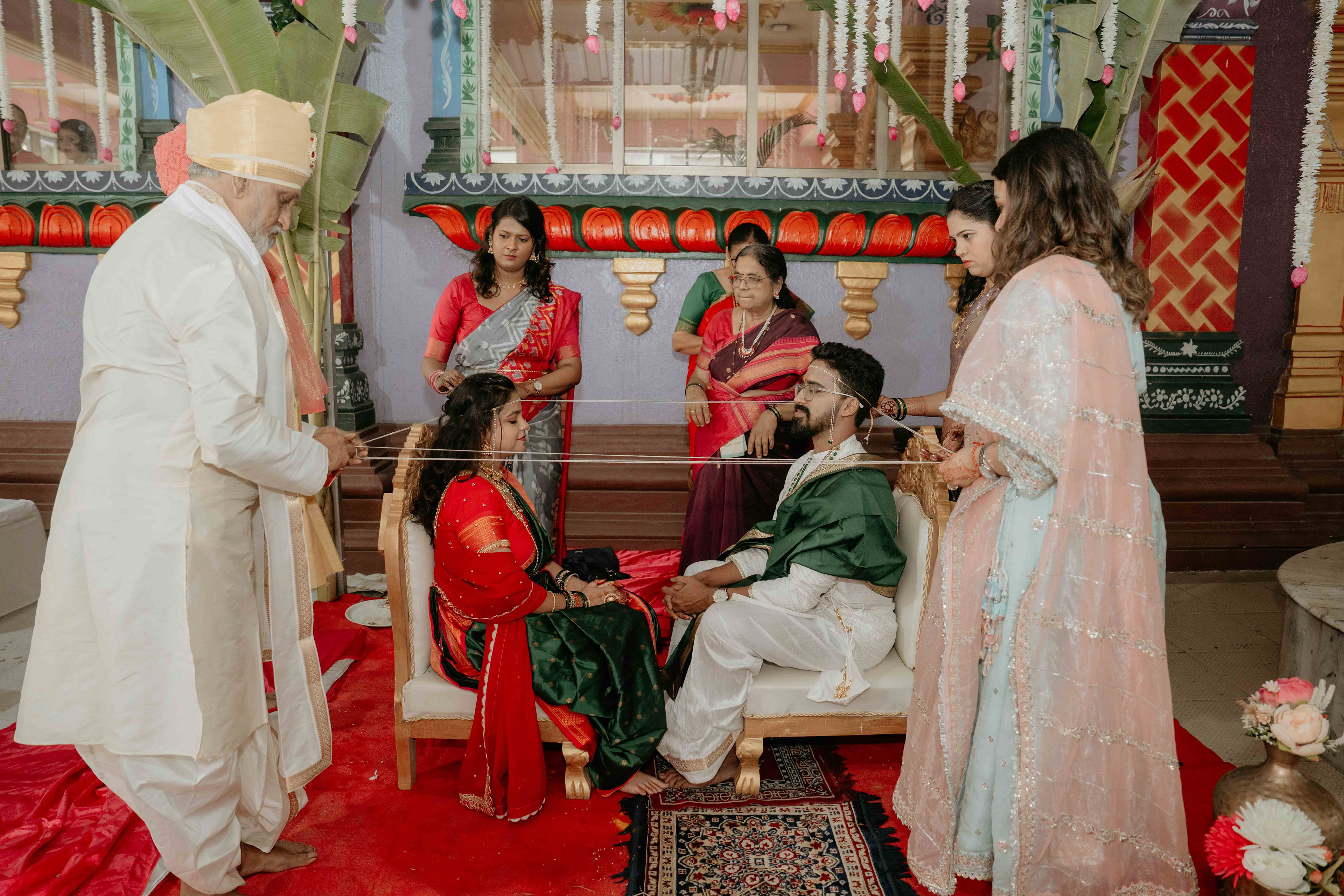 At Eyes on Weddings, we believe that a wedding location is more than just a background it’s a witness to a new beginning. The fusion of the Maharashtrian ceremony within this South Indian architectural gem created a visual narrative of harmony, respect, and timeless love.